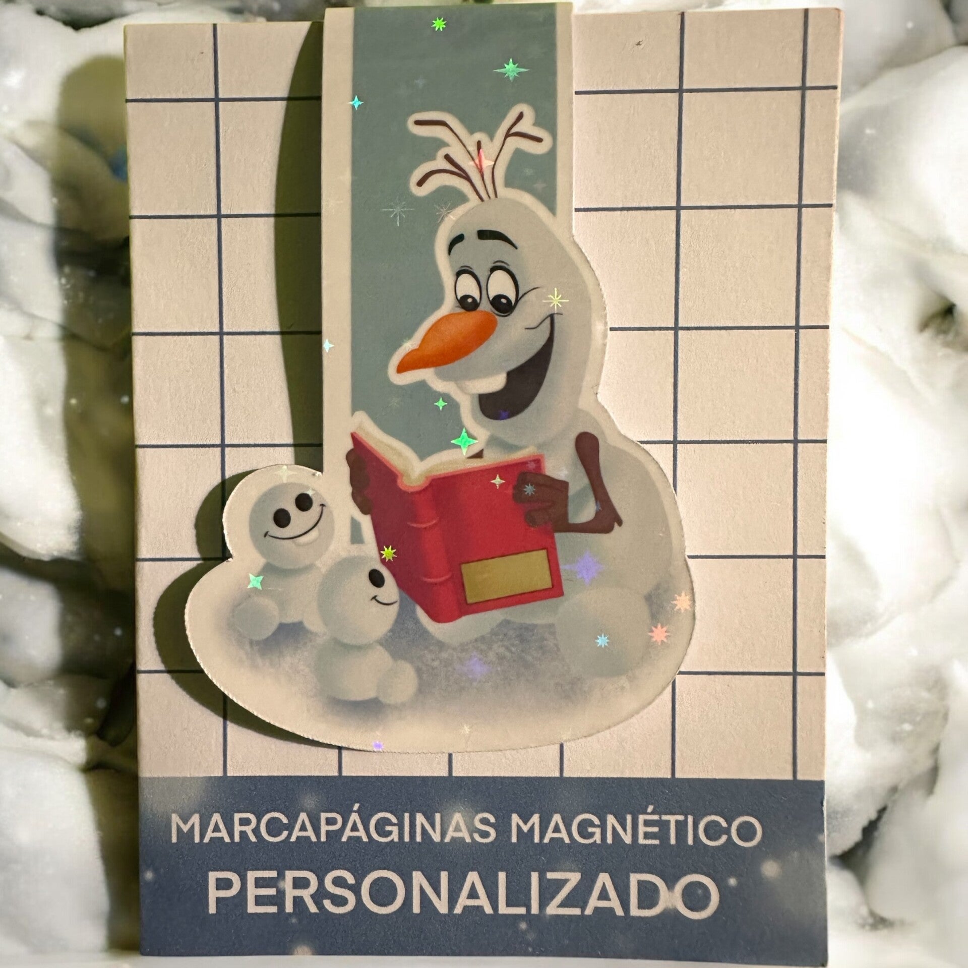 Disfruta de la dulzura y alegría de la nieve con este marcapáginas magnético inspirado en Olaf, el entrañable muñeco de nieve, rodeado de pequeños snowgies y disfrutando de la lectura. Con un fresco fondo azul y acabado brillante, mantendrá tu página segura mientras añade un toque invernal a tus lecturas.